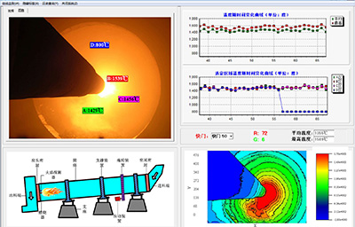 利用紅外輻射圖像無線掃描處理技術(shù)檢測旋轉(zhuǎn)爐體表面溫度。通過在線檢測爐體表面溫度,可推算爐內(nèi)燃燒狀況及物料在爐內(nèi)受熱狀況,了解物料的在回轉(zhuǎn)窯內(nèi)的受熱均勻性問題,通過對燃燒狀況及物料加熱狀況的調(diào)整,提高加熱物料品質(zhì)。